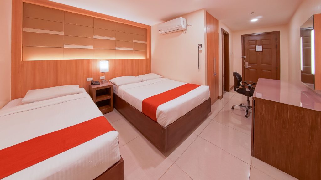Have a relaxing sleep with our Superior Trio Room with a queen-sized bed and a single bed.